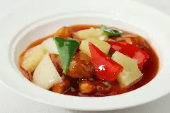 フルーツ入り酢豚/ マーボ豆腐/ 白飯/ 本日のデザート